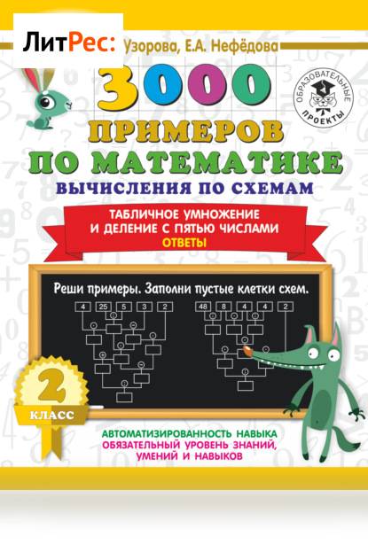 3000 примеров по математике. Вычисления по схемам. Табличное умножение и деление с пятью числами. Ответы. 2 класс продается в интернет-магазине ЛитРесЭксперт: Юрий Л., специалист по онлайн-шопингуДата рецензии: 29 октября 2025 годаРекомендация к покупке нейтральная
