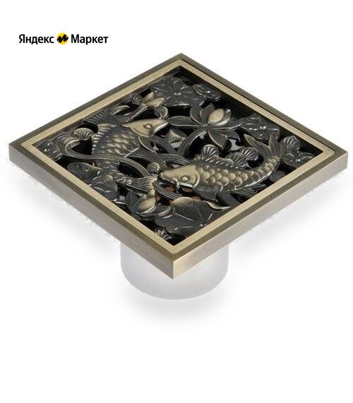 Aflorn Трап AFLORN AF10810C-10, d=50мм, вертикальный, 100х100мм, латунь, с рисунком, античная бронза продается в интернет-магазине Яндекс Маркет