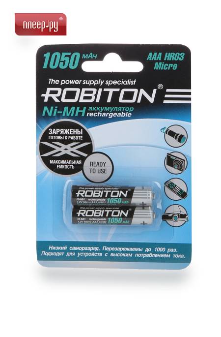 Аккумулятор AAA - Robiton 1050 mAh RTU1050MH-2 BL2 13117 (2 штуки) MH1050AAA продается в интернет-магазине Плеер Ру