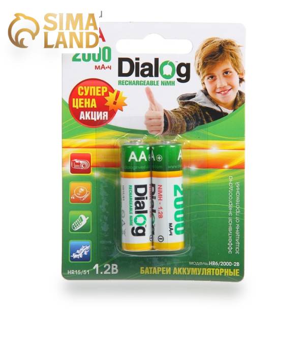 Аккумулятор Dialog, Ni-Mh, AA, HR6-2BL, 1.2В, 2000 мАч, блистер, 2 шт. продается в интернет-магазине Сима Ленд