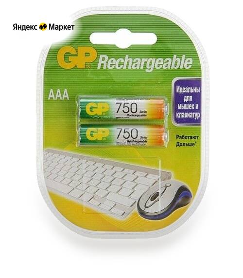 Аккумулятор GP, Ni-Mh, AAA, HR03-2BL, 1.2В, 750 мАч, блистер, 2 шт. продается в интернет-магазине Яндекс Маркет