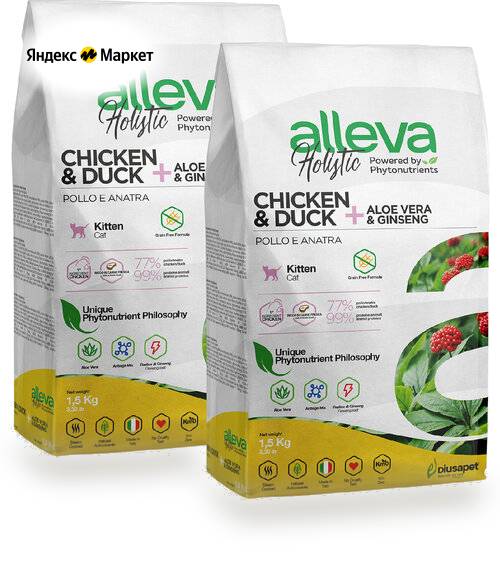 Отзывы на "ALLEVA HOLISTIC KITTEN CHICKEN & DUCK беззерновой для котят с курицей, уткой, алоэ вера и женьшенем (1,5 + 1,5 кг)"