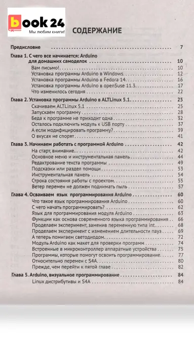 Книга сопровождается ВИРТУАЛЬНЫМ ДИСКОМ, который содержит проекты, о которых рас- сказываетсяв книге, сведения о среде разработки, программы для модуля Arduino, datasheets к микроконтроллерам Arduino Naпо, Arduino Uno и многое другое. Обновляемый виртуальный диск размещен на сайте Издательства www.nit.com.ru в разделе «Материалы к книгам».