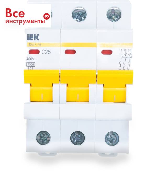 Автоматический выключатель 25А однополюсный ВА47-29 тип C 4,5кА 230/400В IEK -1шт.