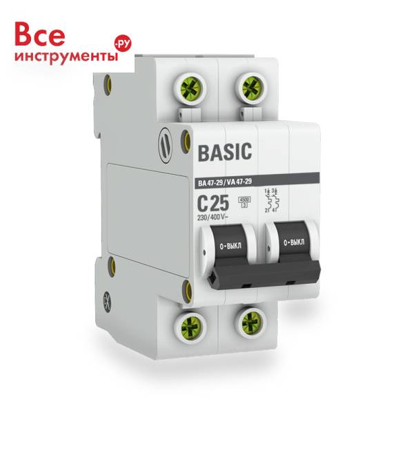 Автоматический двухполюсный автомат EKF 25А mcb4729-2-25C продается в интернет-магазине ВсеИнструменты