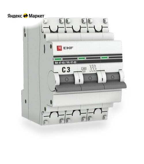 Автоматический выключатель 3P 3А (C) 4,5kA ВА 47-63 EKF PROxima продается в интернет-магазине Яндекс Маркет