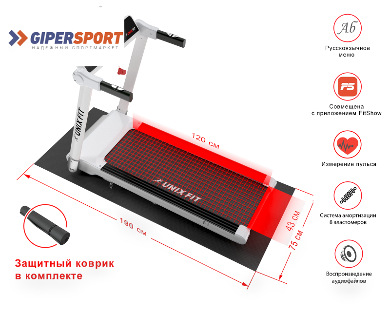 Сердце дорожки – мощный и надежный цифровой двигатель собственного производства 3,75 л.с. с максимальным весом пользователя 180 кг., который разгоняет беговое полотно до 20 км./ч.;
