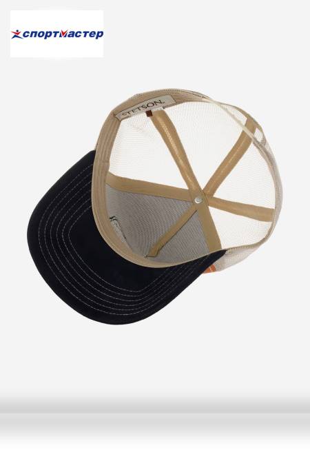 Trucker Cap Canoe — бейсболка с сеточкой от Stetson. Тракерами бейсболки с сеточкой назвали в честь дальнобойщиков, которые носили такие головные уборы не только на работе, но и в повседневной жизни. Передняя панель сшита из оранжевого хлопка, сеточка из серого полиэстера, а козырек обтянут мягкой искусственной замшей синего цвета. На передней жесткой панели вышиты силуэты человека и собаки, сидящих в каноэ на фоне живописного заката, и светло-голубая надпись American Heritage ("Американское наследие"). Сеточка прошита оранжевой нитью, а на козырьке — 6 контрастных серых строчек. Комфортную носку в жаркий день обеспечивает плотная сеточка, пропускающая воздух. Размер головного убора регулируется с помощью пластиковой застежки. Длина козырька 7 см, глубина бейсболки 12 см. Внутри бейсболки есть нашивка с названием бренда.
