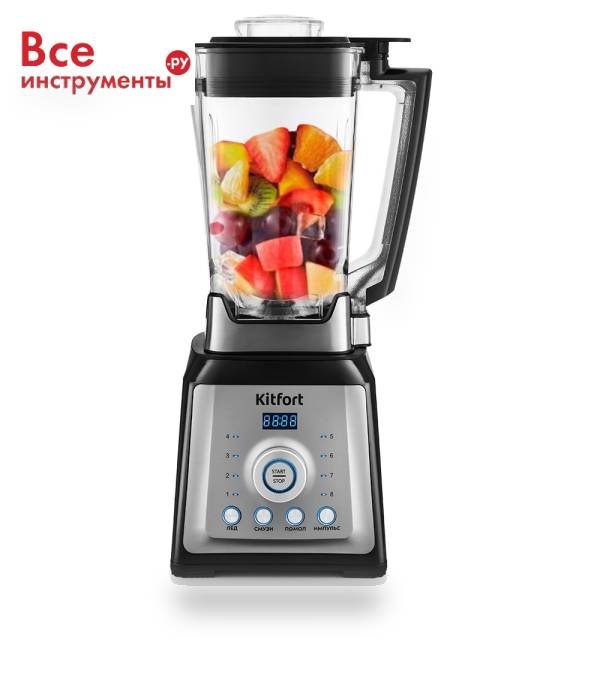 Блендер КТ-1399 унисекс цвет: серо-черный, размер:. Блендер Kitfort КТ-1399 с кнопочным управлением предназначен для приготовления пюре, взбивания, измельчения и смешивания. Он отлично справится с приготовлением смузи, молочных коктейлей, муссов, супов-пюре, соусов, детского питания, а также с колкой льда. Блендер оснащён вместительной чашей ёмкостью 2 л. В крышке есть специальное отверстие, закрываемое колпачком, для добавления ингредиентов непосредственно во время работы. 8 скоростных режимов позволяют выбрать оптимальный способ измельчения любого продукта. Также блендер имеет 4 режима работы: "Лёд", "Смузи", "Помол" и "Импульс". Надёжный двигатель мощностью 2000 Вт рассчитан на длительный срок эксплуатации. Блендер оснащён прочным и надёжным 8-лезвийным ножом из нержавеющей стали с оптимальной формой лезвий и заточки для эффективного равномерного измельчения продуктов. В комплекте с блендером идёт толкатель, который может понадобиться при измельчении твёрдых продуктов. У КТ-1399 есть усиленные прорезиненные ножки с большой площадью контакта с поверхностью. Это обеспечивает прочную фиксацию блендера на столе и дополнительно снижает вибрации, а также уровень шума при работе.