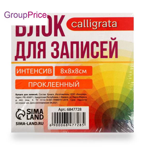 Блок бумаги д/записей на склейке 8*8*8 calligrata цветн интенсив, 80г/м2 продается в интернет-магазине ГрупПрайс