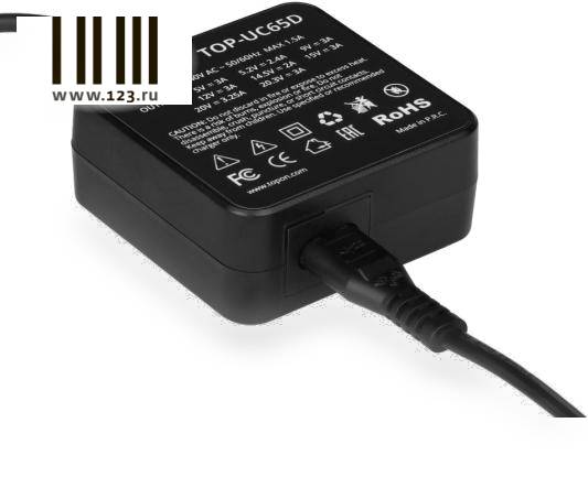 Универсальный блок питания 65W c кабелем Type-C, PowerDelivery 3.0, в розетку. Кабель 170 см.
