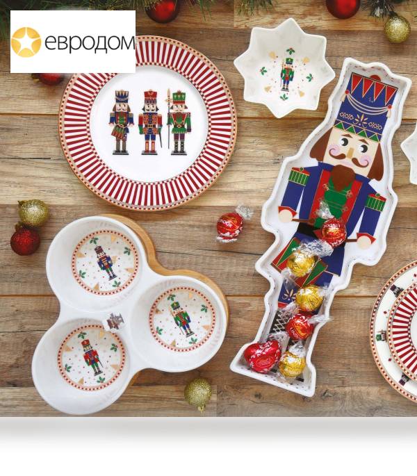 Новогодняя коллекция Щелкунчик от итальянского бренда Easy Life станет украшением праздничного стола, а также замечательным подарком близкому человеку. Посуда выполнена из качественного фарфора с ярким красочным рисунком и декорирована золотом. Все изделия упакованы в красивую подарочную коробку.