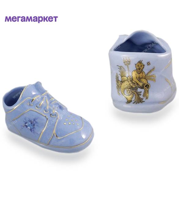 Ботиночек Leander "Знаки зодиака /Водолей" голубой - прекрасный выбор для тех, кто ценит качество. Основной цвет голубой, декор с золотом. Продается поштучно. Товар выполнен из фарфора, произведен чешской компанией Leander.