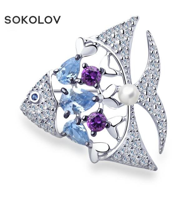 Брошь SOKOLOV из серебра с жемчугом и фианитами продается в интернет-магазине SOKOLOV