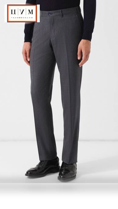 Прямые меланжевые брюки серого цвета рифмуются с чем угодно: с футболкой, с кардиганом, а в сочетании с поло и оксфордами вещь не будет противоречить офисному дресс-коду. Для создания модели мастера марки использовали тонкую легкую шерсть с добавлением прочного шелка. Материал комфортно облегает фигуру, не сковывая движения. Изделие вошло в коллекцию сезона весна-лето.