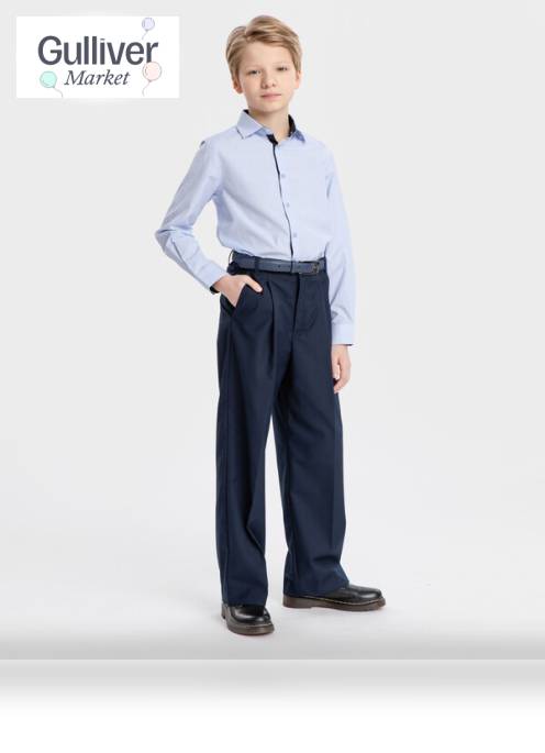 Брюки прямого кроя с защипами синие Button Blue (134) продается в интернет-магазине Гулливер Маркет