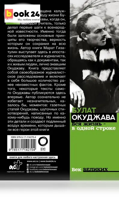 Булат Окуджава. Вся жизнь - в одной строке продается в интернет-магазине Book24Эксперт: Аркадий И., E-commerce аналитикДата рецензии: 14 октября 2025 годаРекомендация к покупке нейтральная