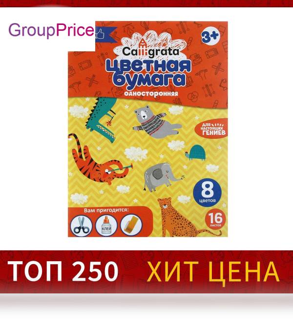В наборе: 16 листов цветной бумаги 200х285 мм. По 2 листа каждого цвета.