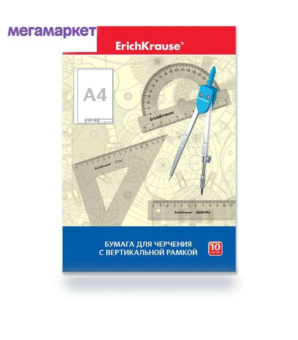 Бумага для черчения ErichKrause, А4, 10 листов, вертикальная рамка продается в интернет-магазине МегаМаркет