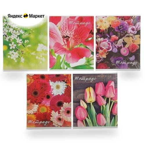 Calligrata Тетрадь 48 листов в клетку Calligrata "Цветы", обложка мелованная бумага, блок №2, белизна 75% (серые листы), микс продается в интернет-магазине Яндекс Маркет