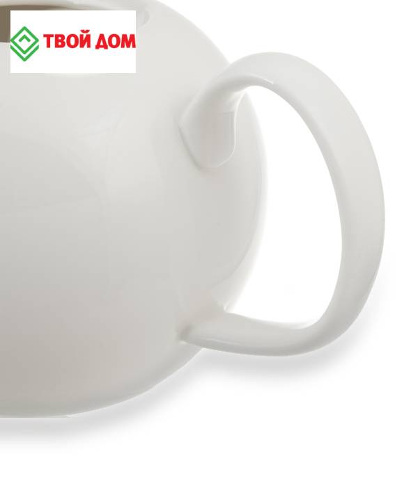 Однотонный белый заварочный чайник из фарфора в цветной коробке. Чайник можно мыть в посудомоечной машине и подогревать в СВЧ.