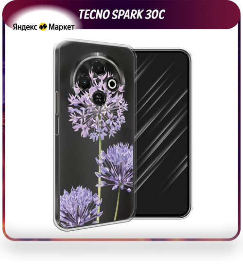 Чехол на Tecno Spark 30C / Текно Спарк 30C с принтом Сиреневые цветы акварель, прозрачный продается в интернет-магазине Яндекс Маркет