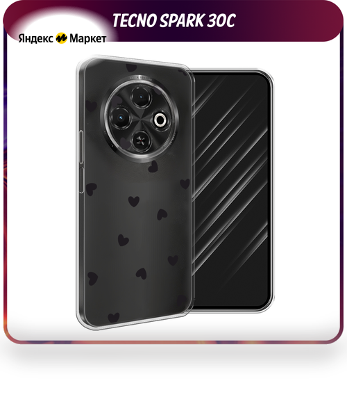 Чехол на Tecno Spark 30C / Текно Спарк 30C с принтом Маленькие чёрные сердечки, прозрачный продается в интернет-магазине Яндекс Маркет