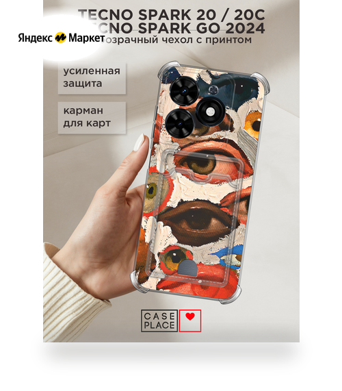 Чехол на Tecno Spark Go 2024/Spark 20C (Текно Спарк Го 2024/Спарк 20C) с картой и принтом Глаза масляная живопись продается в интернет-магазине Яндекс Маркет