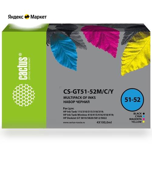 Чернила Cactus CS-GT51-52M/C/Y 4x100мл голубой/пурпурный/желтый/черный для DeskJet GT 5810/5820/5812/5822 продается в интернет-магазине Яндекс МаркетЭксперт: Ростислав Т., специалист по потребительским товарамДата рецензии: 6 ноября 2025 годаРекомендация к покупке нейтральная