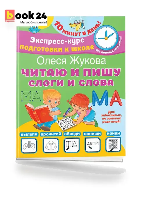 Книги этой серии созданы специально для занятых родителей. Выполнять задания самостоятельно смогут даже дети, которые еще не научились читать: формулировки заданий заменяют понятные пиктограммы так, чтобы ребенок сразу понял, что требуется сделать (нарисуй, прочитай, обведи и т. д.). Кроме того, такие занятия приучают малыша к самостоятельному выполнению заданий, что является важнейшим навыком для будущего первоклассника. Выполняя задания этой книги, ребенок научится читать слоги и простые слова, овладеет первыми навыками письма. Крупные буквы для чтения и обводки облегчат малышу освоение грамоты, а веселые картинки превратят обучение в увлекательную игру. Для дошкольного возраста.
