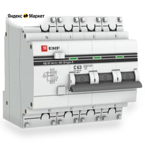 Дифф. автомат 4Р 63А 100мА 4,5кА С АД32 PROxima EKF продается в интернет-магазине Яндекс Маркет