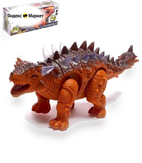 Динозавр «Анкилозавр» работает от батареек, свет и звук, цвет коричневый продается в интернет-магазине Яндекс Маркет