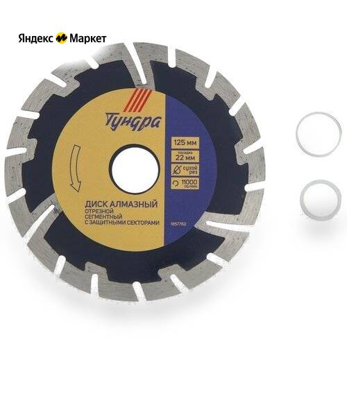 Диск алмазный отрезной тундра, сегментный с защитными секторами, сухой рез, 125 х 22 мм продается в интернет-магазине Яндекс МаркетЭксперт: Аркадий И., E-commerce аналитикДата рецензии: 28 октября 2025 годаРекомендация к покупке нейтральная