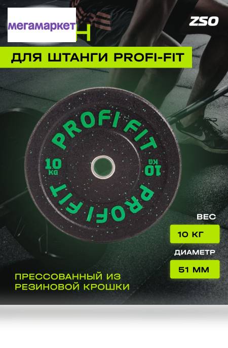 Диск для штанги HI-TEMP с цветными вкраплениями D51 мм PROFI-FIT 10 кг продается в интернет-магазине МегаМаркет