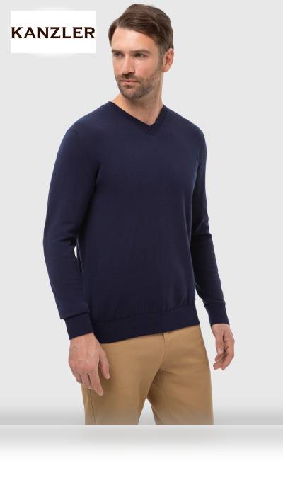 Базовый темно-синий джемпер KANZLER идеально подружится с вещами как ярких, так и базовых оттенков. Это универсальная модель с треугольным вырезом, который идет всем мужчинам и визуально вытягивает силуэт. Дизайнеры уделили особое внимание составу и выполнили модель из особенно мягкого и гладкого хлопка Пима. Хлопок премиум-класса, который собирается вручную значительнее прочнее обычного хлопка, материал получается более шелковистым и прекрасно сохраняет форму. Джемпер с текстильными манжетами и резинкой внизу отличается комфортной посадкой и лаконичным дизайном.