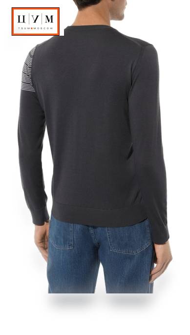 Темно-серый джемпер с белым графичным логотипом на левом плече получился настолько легким и приятным на ощупь, что его комфортно носить даже на голое тело. Для изготовления модели использовали тонкую пряжу из микса нежной шерсти и гладкого прочного шелка. Изделие поддерживает оптимальный микроклимат и не пилингуется со временем.