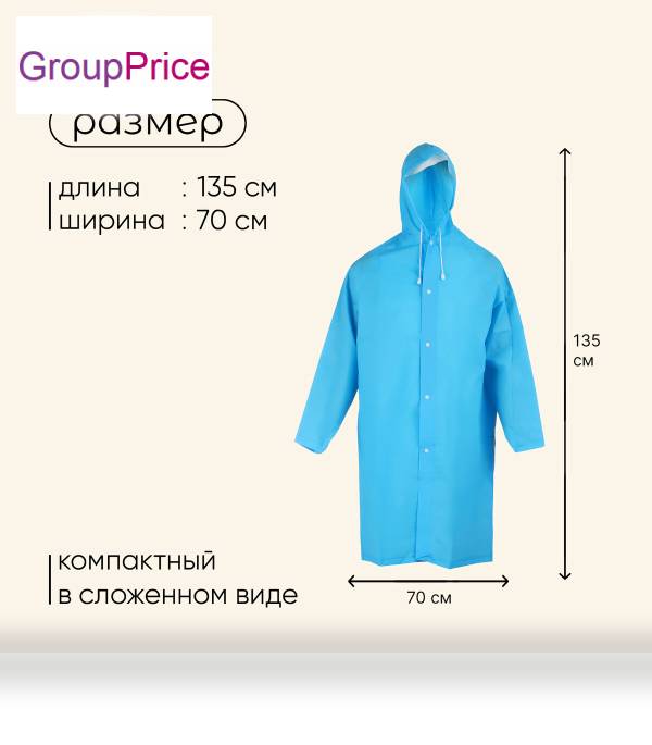 • длина по спине, с капюшоном: 135 см;