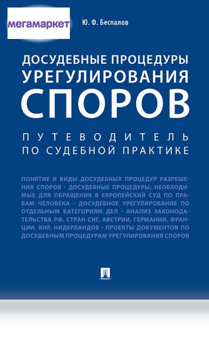 Досудебные процедуры урегулирования споров. Путеводитель по судебной практике. Научно-п... продается в интернет-магазине МегаМаркетЭксперт: Святослав В., товарный критикДата рецензии: 8 ноября 2025 годаРекомендация к покупке нейтральная
