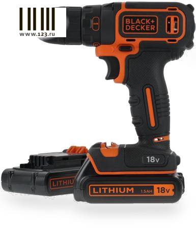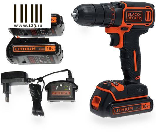 Дрель-шуруповерт аккумуляторная BLACK&DECKER BDCDC18B-QW 18В 0-650 об/мин 10.3/30 Нм 2х1.5Ач Li-Io продается в интернет-магазине 123 Ru