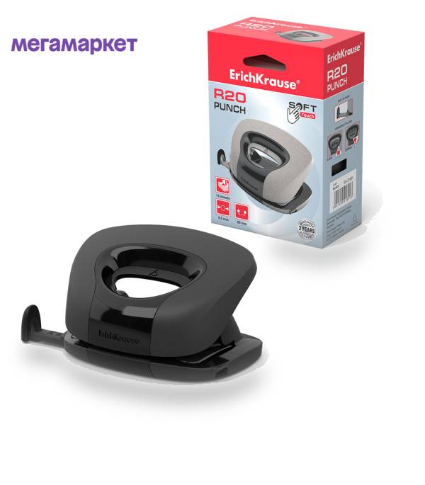 Дырокол ErichKrause R20 Soft touch до 15 листов, черный продается в интернет-магазине МегаМаркет