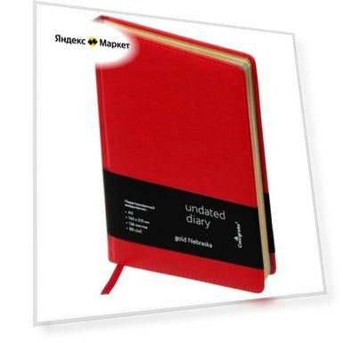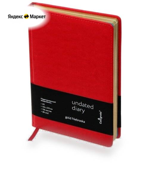 Ежедневник НЕдатированный А5, 136 листов в линейку, кожзам "Небраска", золотой срез, красный продается в интернет-магазине Яндекс Маркет