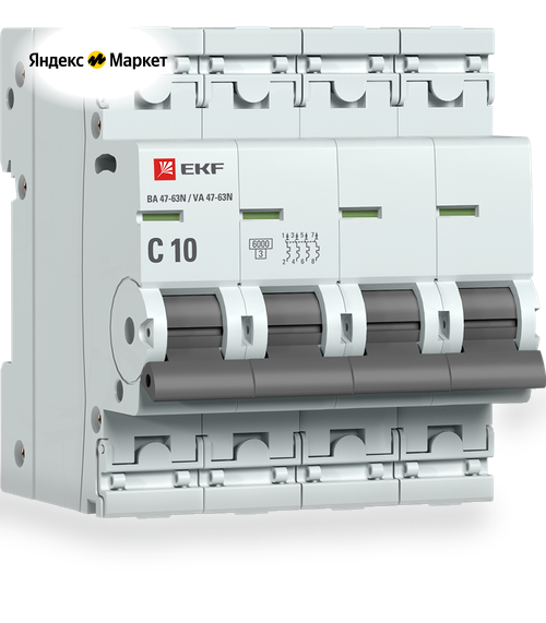 EKF Автоматический выключатель 4P 10А (C) 6кА ВА 47-63N PROxima M636410C (10 шт.) продается в интернет-магазине Яндекс МаркетЭксперт: Сергей К., специалист по e-commerceДата рецензии: 31 октября 2025 годаРекомендация к покупке нейтральная