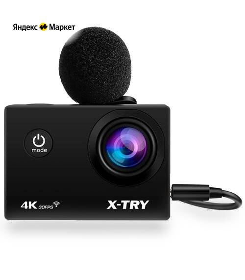 X-TRY XTC186 - экшн-камера серии EMR (EXTERNAL MICROPHONE & REMOTE) с возможностью качественной записи звука через внешний микрофон. Модель имеет процессор Mstar8328, сенсор SONY IMX175, широкоугольный объектив 170°, разрешение фото 20 Мрх и 8х кратный цифровой ZOOM для увеличения фотографий. Предусмотрена цифровая стабилизация изображения EIS на всех режимах видеосъемки. Поддерживаются следующие режимы видеосъемки: 4К@30fps, 2.7К@30fps, FHD1080p@60fps, FHD1080p@30fps, HD720p@120fps и HD720p@60fps. Циклическая видеосъемка и функция автостарт (включает режим видеорегистратора при запуске двигателя автомобиля) позволяет использовать камеру в качестве авторегистратора, а наличие режимов фотосъемки (одиночная, мультисъемка, съемка с задержкой, time lapse) и видеорежимов (Loop recording, Slow motion) делают съемку удобной, качественной и комфортной. Присутствует функция поворота экрана. Встроенный модуль WiFi обеспечивает не только управление режимами съемки и различными настройками камеры, но и трансфер записанного материала на мобильные устройства. Съемный аккумулятор позволяет записывать до 90 минут непрерывного видео в формате FullHD 1080p (60fps).