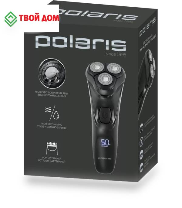 Роторная электробритва Polaris PMR 0304R PRO 5преобразит утреннее бритье в настоящий ритуал стиля и комфорта. Три плавающие головки аккумуляторной бритвы подстраиваются под контуры лица и тела, что позволяет более эффективно срезать волоски, обеспечивая гладкое бритье. Это мощное устройство устойчиво к воздействию воды, что позволяет его очищать под струей воды, упрощая уход и поддержание гигиены. Батарея обеспечивает до 75 минут автономной работы, что достаточно для нескольких сеансов бритья. Быстрая зарядка за 1.5 часа делает устройство удобным для использования в повседневной жизни. Даже самая жесткая щетина не составит ей преграды! Благодаря плавающим головкам и подвижному блоку, эта бритва для сухого и влажного бритья подходит для бритья как сухой, так и влажной кожи, что позволяет выбирать наиболее комфортный для вас способ бритья.