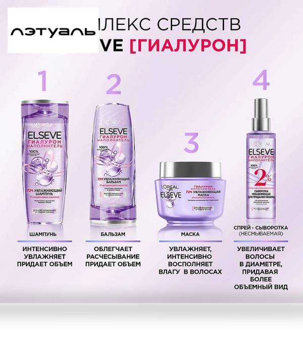 ELSEVE Увлажняющий шампунь "Гиалурон Наполнитель", для обезвоженных и тонких волос, с гиалуроновой кислотой Hyaluron Moisture продается в интернет-магазине Лэтуаль