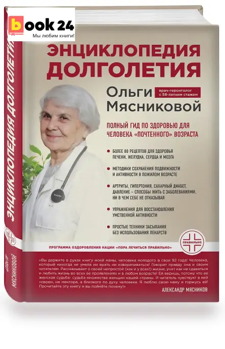 Энциклопедия долголетия Ольги Мясниковой продается в интернет-магазине Book24Эксперт: Аркадий И., E-commerce аналитикДата рецензии: 11 октября 2025 годаРекомендация к покупке положительная