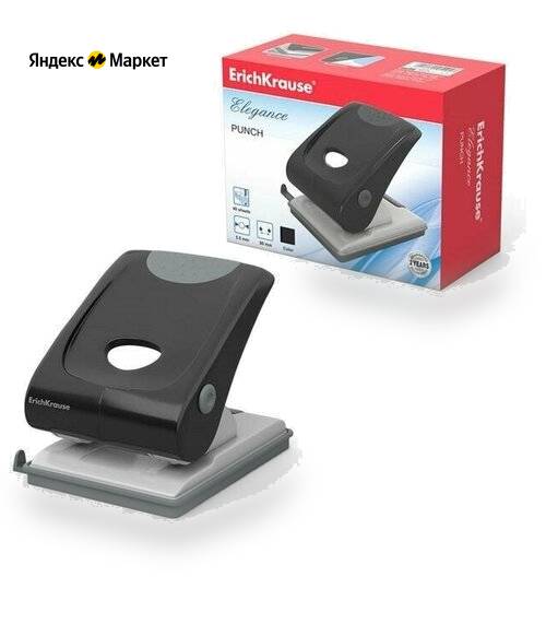 ErichKrause Дырокол до 40 листов ErichKrause Elegance, черный, диаметр прокола 5.5мм, расстояние между проколами 80мм продается в интернет-магазине Яндекс Маркет