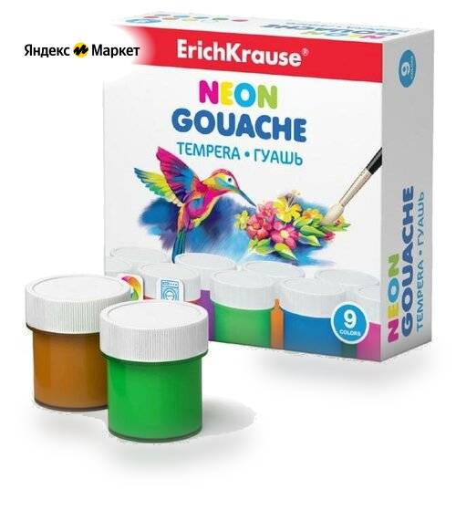 Гуашь 9 цветов х 20 мл, ErichKrause Neon, неоновая, в картонной упаковке продается в интернет-магазине Яндекс Маркет
