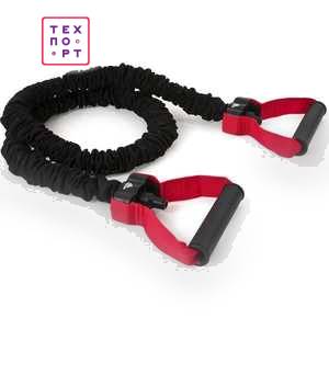 • Два комплекта тросов разной жесткости - красный (мягкий) и зеленый (жесткий); длина красного троса с карабинами 29 см (сама резинка 14 см), длина зеленого троса с карабинами 34 см (сама резинка 19 см);