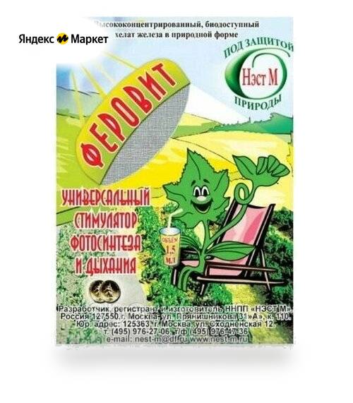 Феровит - универсальный стимулятор фотосинтеза и дыхания растений, устранит хлороз (пожелтение листьев) вызванный дефицитом доступного железа и повреждением вредителями. Препарат эффективно компенсирует недостаток освещенности растений.